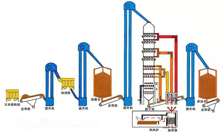 500噸高溫玉米烘干塔工作原理: